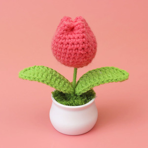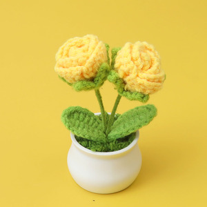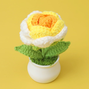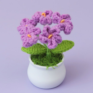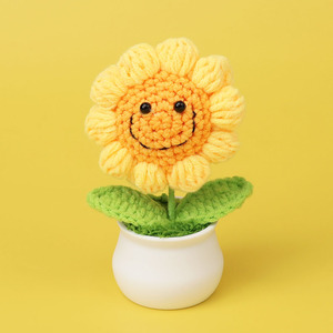 成品手工跨境针织毛线向日葵盆栽铃兰勿忘我仿真花摆件教师节礼物