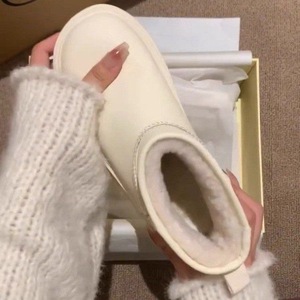 厚底雪地靴女冬加绒加厚东北棉鞋欧货爆款马丁靴法式小短靴及踝靴