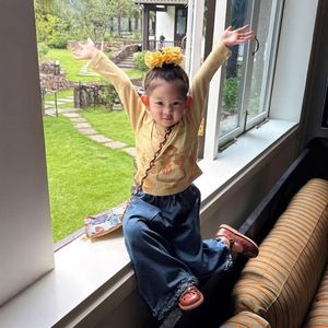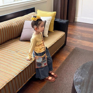 女童秋款套装2025新款儿童宝宝T恤两件套时髦洋气上衣阔腿牛仔裤