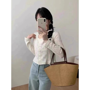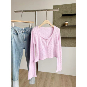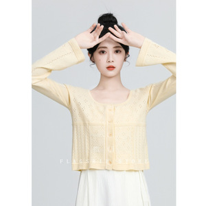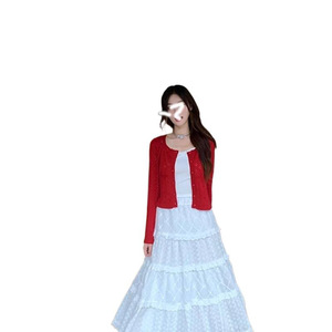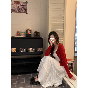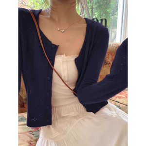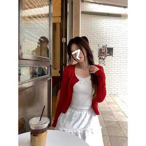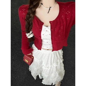 红色镂空短款开衫女2025秋冬薄款外套长袖针织上衣