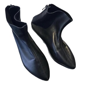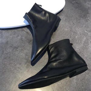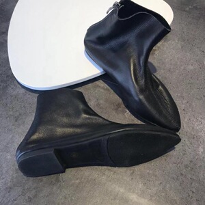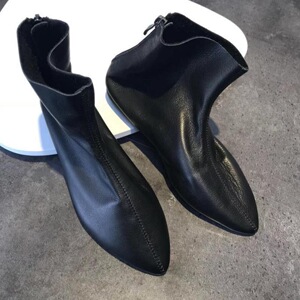 纯源小众秋季新款TR小方头舒适羊皮一脚蹬短靴子女平底复古踝靴潮