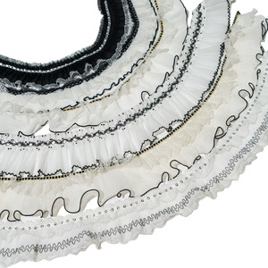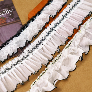 网纱雪纺打褶黑j白花边手工diy衣领袖口裙边服装百搭装饰花边辅料