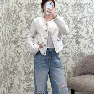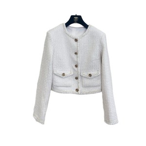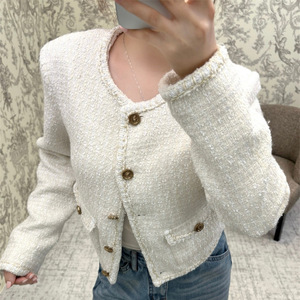 25秋季新款南油高定Cha简约休闲圆领单排扣双口袋花呢外套