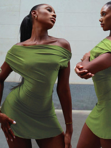 42135DBG亚马逊爆款2025夏季新品修身个性辣妹一字肩欧美连衣裙女
