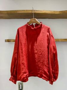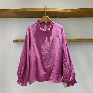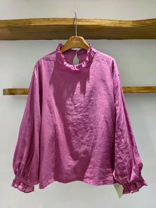 2025秋季款文艺百搭后背一粒扣苎麻双层灯笼袖上衣衬衫