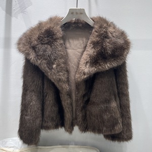 仿皮草毛毛外套短款高级感气质宽松保暖时尚洋气大翻领外套2025