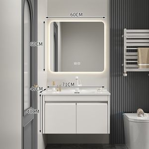 智能豪华美妆带灯镜柜-包安装-61公分陶瓷盆-双抽单门