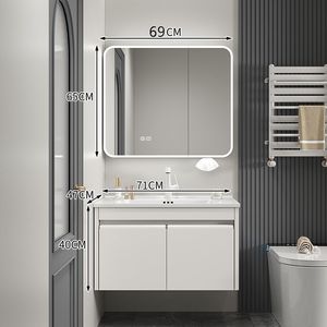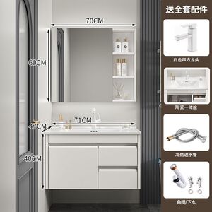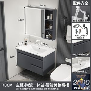 多功能智能镜柜-灰色 包安装-71公分陶瓷盆-双抽单门