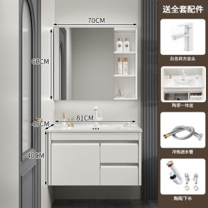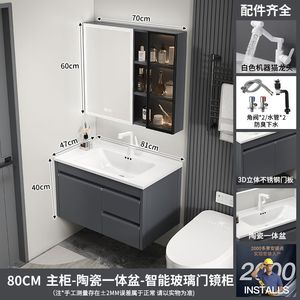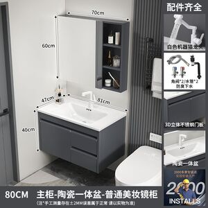 多功能智能镜柜-灰色 包安装-81公分陶瓷盆-双抽单门