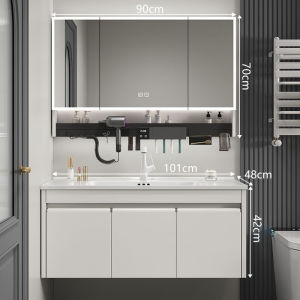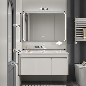多功能智能镜柜-灰色 包安装-91公分陶瓷盆-三门
