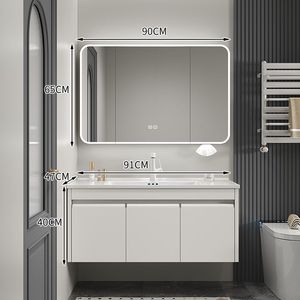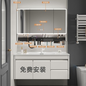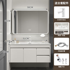 多功能智能镜柜-包安装-91公分陶瓷盆-双抽双门