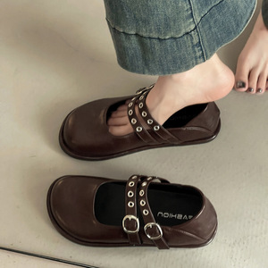 英伦风粗跟女生玛丽珍鞋秋季复古小个子增高包头单鞋防滑乐福鞋潮