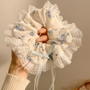 粉色蝴蝶结碎花蕾丝大肠发圈女高级感慵懒风超大发饰扎头发头绳