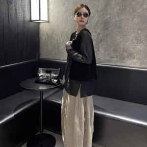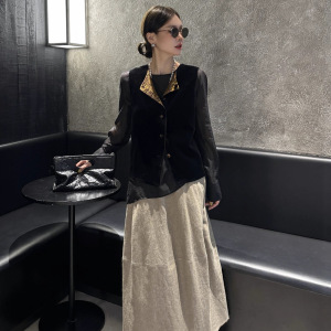 新中式真丝丝绒拼龟背流光缎马甲一衣四穿超百搭不挑人背心上衣