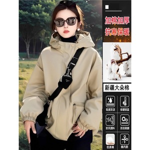 欧货高级感冲锋衣外套女款春秋2025新款宽松休闲连帽夹克棉衣棉服