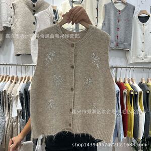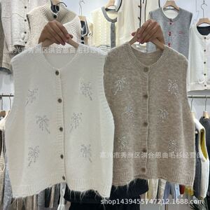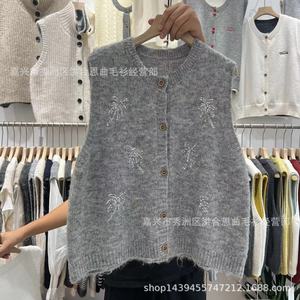 韩系复古无袖针织开衫背心女秋冬新款宽松慵懒风毛衣马甲圆领上衣
