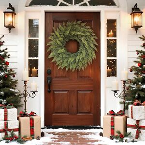 亚马逊热销圣诞节装饰品人造仿真绿色花环 墙壁门窗家居节日挂饰