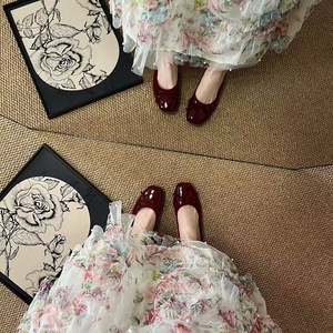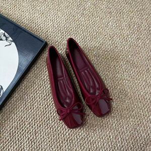 红色单鞋女2025女士时尚新款法式配裙子气质春秋漆皮平底浅口芭蕾