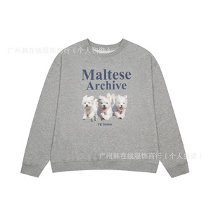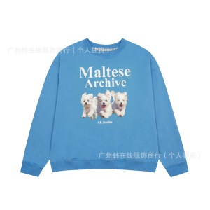 韩国 waikei彩色小狗印花圆领卫衣毛圈款加绒款男女同款秋冬潮牌