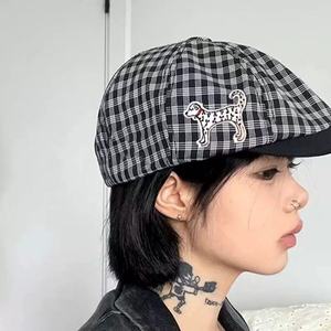 小狗复古日系贝雷帽显脸前进格纹大头画家可爱鸭舌帽子百搭报童帽