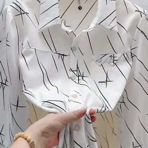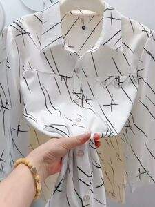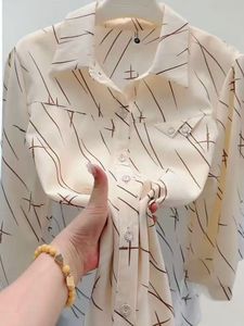 印花衬衫夏季上衣新款2025七分条纹衬衣时尚显瘦气质宽松