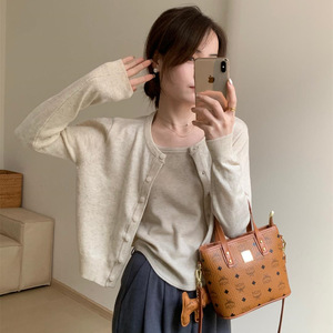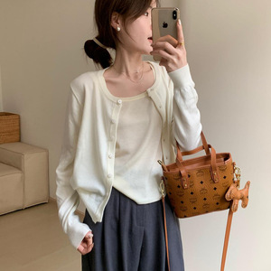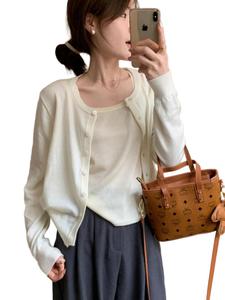 春秋季薄款小个子外搭长袖针织开衫上衣早秋chic红色毛衣短外套女