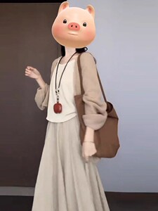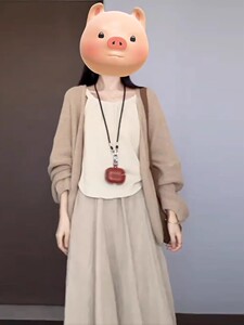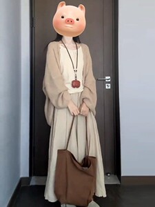 套装(开衫+杏色半裙)