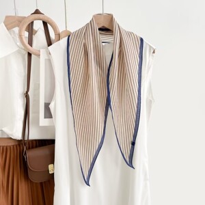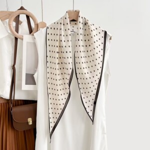 真丝羊毛菱形巾长条千鸟格小丝巾女桑蚕丝春夏新款黑白波点百搭领