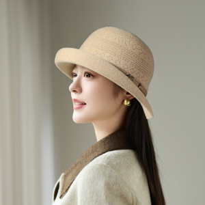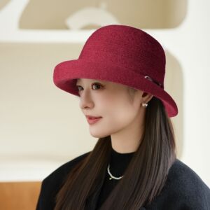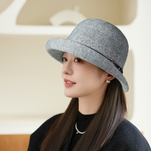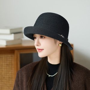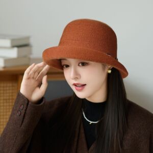 秋冬季时尚卷边礼帽女针织保暖皮带扣显脸小盆帽户外旅游休闲帽子