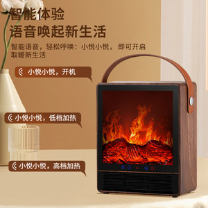 家用取暖器小型壁炉节能暖气炉仿真火焰山暖风机台式电暖气语音