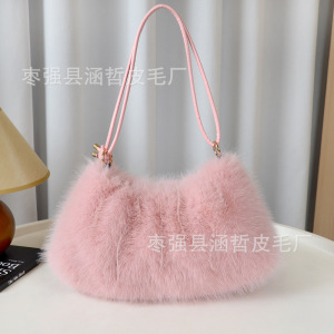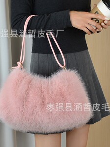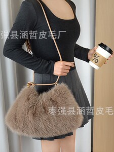 毛茸茸手提包包2025秋冬季新款时尚简约仿狐狸毛褶皱包女士托特包