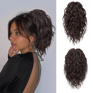 跨境欧美假发抓夹马尾水波纹短卷发马尾wavy claw ponytail