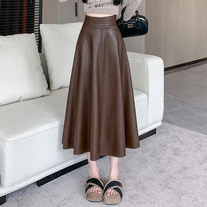 实拍视频咖色皮裙半身裙女秋冬2025高腰显瘦垂感a字pu皮百褶伞裙