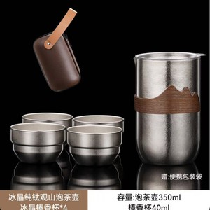 纯钛旅行茶具套装便携户外鹰嘴泡茶器隔热防烫钛金属野营轻奢风