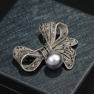 外贸热卖爆款枪黑复古水钻珍珠大蝴蝶结胸针个性别针胸花女饰品