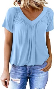 2025亚马逊欧美跨境热卖新款个性V领插肩袖抽褶休闲日常家居T恤