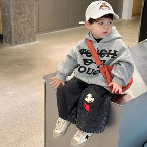 男童外套儿童春秋装2025新款潮流灰色连帽卫衣女宝宝洋气休闲上衣