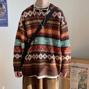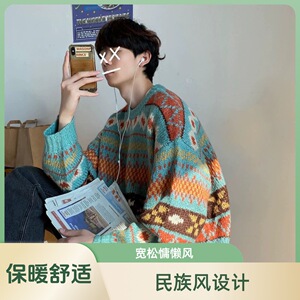 毛衣男原宿风ins秋冬款韩版潮流港风宽松慵懒风百搭圆领套头针织