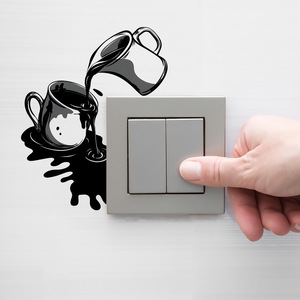 简约创意咖啡杯墙贴客厅卧室开关贴家居背景美化墙贴纸自粘批发