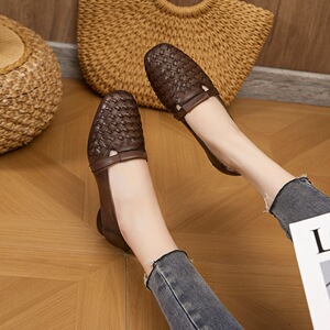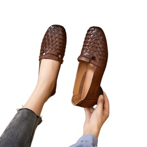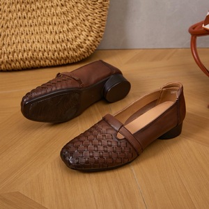 龍林2025秋季新款头层牛皮方头复古手工编织舒适休闲百搭单鞋女鞋