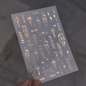 暗黑哥特风蝴蝶美甲贴纸金属荆棘羽翼十字架星芒高级背胶指甲贴纸