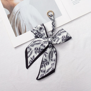丝巾蝴蝶结钥匙扣挂饰多巴胺色汽车钥匙链圈时尚创意女士包包挂件
