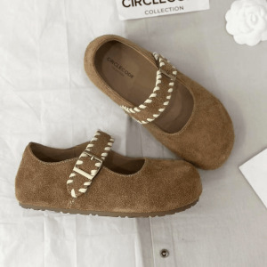 有意思思女鞋“编制博肯”头层牛皮女鞋时尚休闲百搭软底平底单鞋