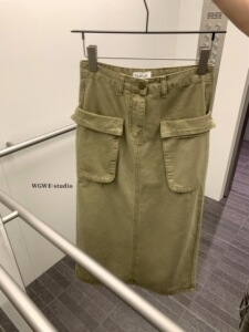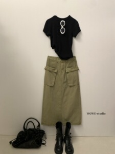 【WGWE】6847高腰后长款开叉工装半身裙休闲双口袋a字长裙半身裙