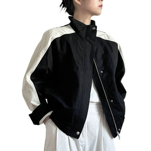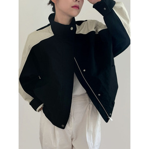 呼吸感秋季外套女立领拼色廓形百搭短款风衣感休闲夹克上衣