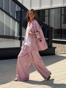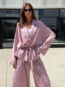 慵懒极简风宽松西装套装女收腰设计宽松廓形低饱和色彩无压力穿搭