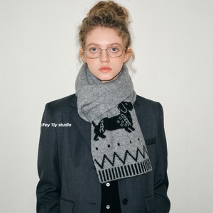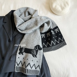 英伦风2025新款时髦腊肠狗冬季加厚保暖围巾女休闲百搭针织围脖男