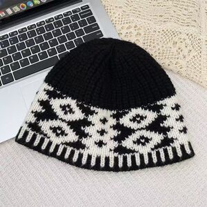 秋冬爆款复古拼色菱格针织毛线帽女韩版百搭防风保暖显脸小盆帽男