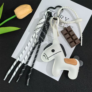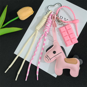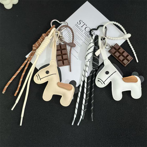 ins同款复古钥匙扣挂饰miu系风腊肠狗编织绳包挂小众皮质棒球挂件