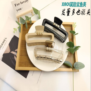 高级感抓夹发夹法式复古气质后脑勺鲨鱼夹慵懒风长方镂空大号发抓